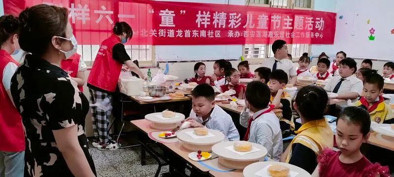 5月31日, “六一”国际儿童节前夕,北关街道龙首东南社区携手莲湖嘉乐园社会工作服务中心,开展“别样六一‘童’样精彩”儿童节主题活动,组织30名辖区孩子DIY蛋糕,让他们收获甜蜜的“六一”礼物。