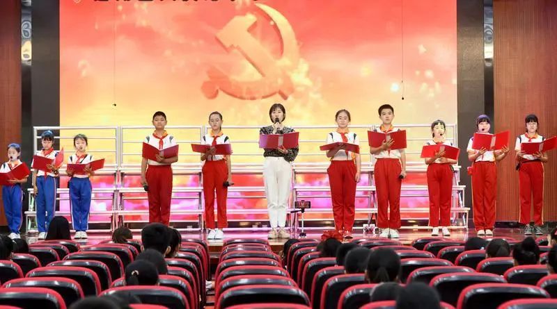 一首首激昂的诗歌,激发出同学们的爱国情怀;一段段优美的舞蹈,表达了对祖国母亲的最高礼赞!“黄河向东方,水流万里长……”在“千人诵读”的巨大震撼中,他们坚定地发出誓言“请党放心,强国有我!”