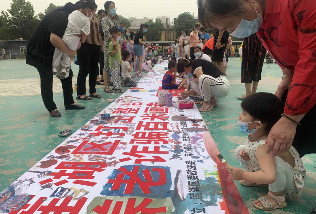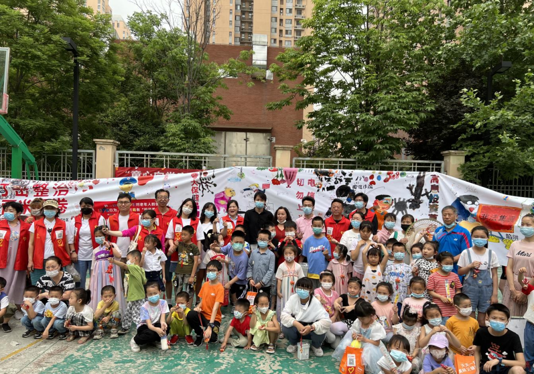 5月29日,莲湖区委政法委联合西安市小红帽公益组织,在枣园街道莱茵小城社区开展“童心向党庆六一预防养老诈骗百米画卷行”主题宣传活动。