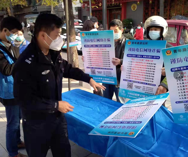 同时,青年路派出所还会同村居、物业等群防力量,建立警民反诈“联防联控”机制,将反诈与日常接处警、流动人口登记、消防检查等工作密切结合,提升反诈联防水平。目前,青年路派出所正在逐步完成对辖区六个社区,169个小区,13560户,38000余人常住居民宣传全覆盖。