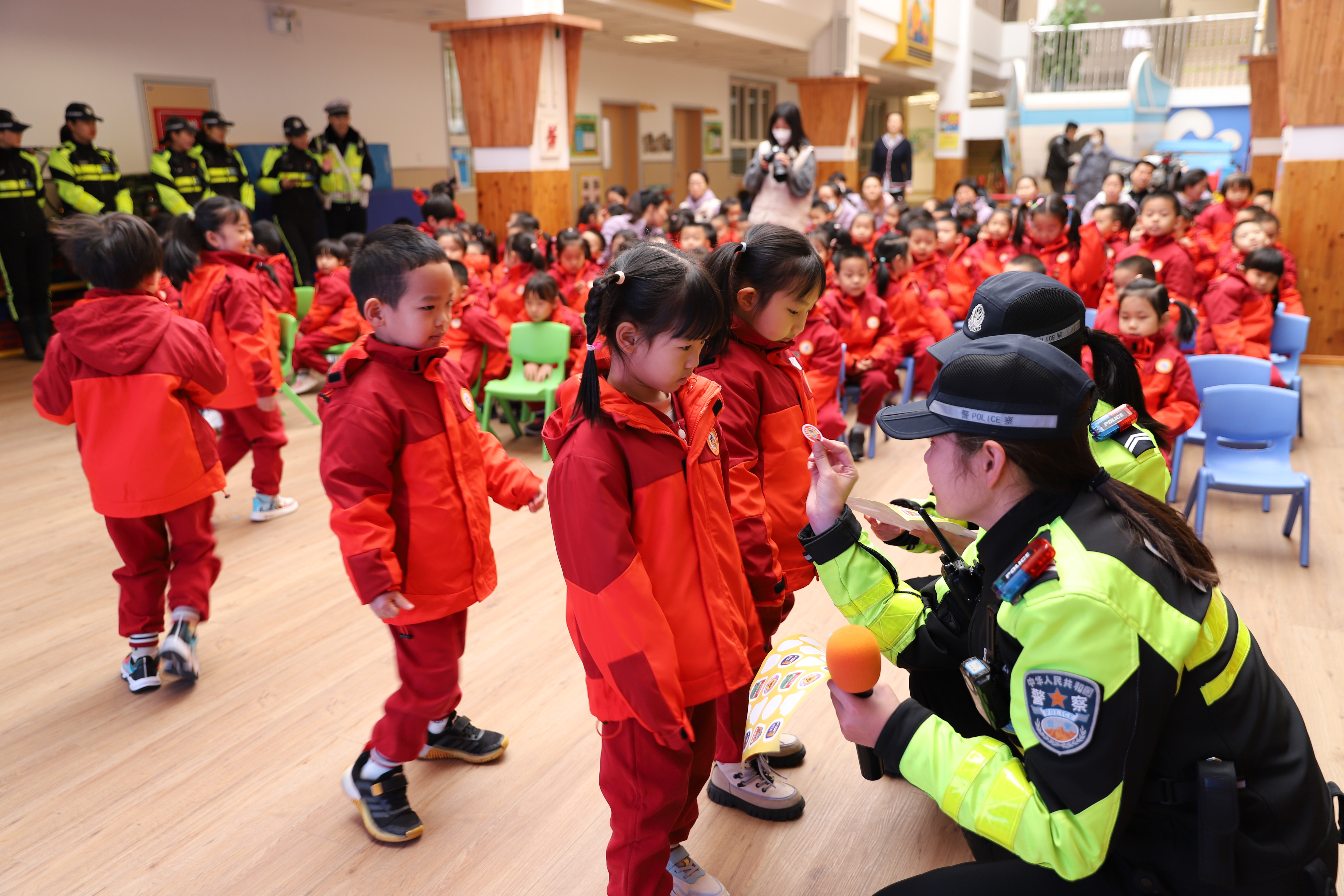 为增强小朋友们的交通安全意识,提高幼儿的自我防护能力, 2月14日,公安交警莲湖大队“巾帼先锋队”女子铁骑走进陕西省艺术幼儿园,为在校幼儿和老师带来了开学的第一堂交通安全课。