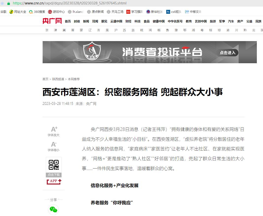央广网刊发新闻报道《西安市莲湖区:织密服务网络兜起群众大小事》