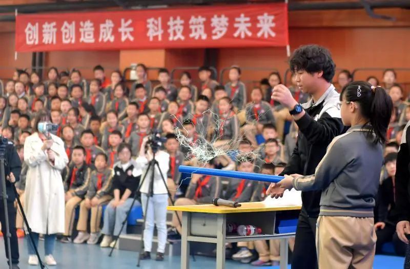 该校学生表演了趣味盎然的科普剧《从种子到种子》,生动地展现了秦岭珍稀植物——陕西羽叶报春在该校的“奇妙之旅”;3组“小小科学家”战队进行了科创挑战赛决赛《速搭木桥》,台下学生观众“加油”之声不绝于耳;科学老师带来的科学实验秀《静电章鱼》更是让现场小观众们亲身感受到科学的魅力,让孩子们在动手动脑中爱上了科学。