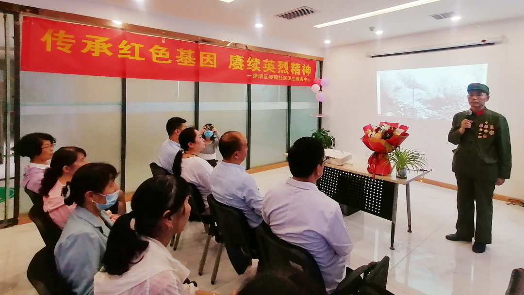 为大力弘扬拥军优属,拥政爱民光荣传统,营造全社会尊崇军人的良好社会氛围,6月6日,枣园社区卫生服务中心邀请对越自卫反击战战斗英雄、“最美志愿者”、“五老宣讲团”成员、退役老兵白安周开展“传承红色基因赓续精神血脉”主题宣讲活动。