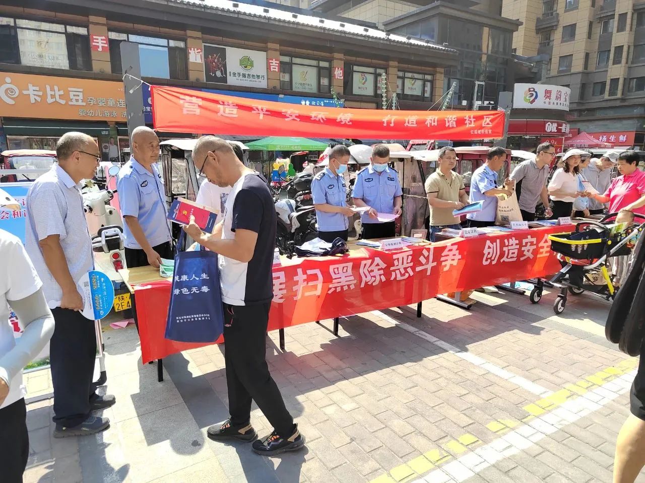 为提高辖区居民的法治意识,营造和谐稳定的社会环境,6月30日,红庙坡街道联合莲湖区委政法委、区委社会治理办、区司法局、公安莲湖分局共同在梨园社区天朗大兴郡蔚蓝生活广场举行法治进社区集中宣传活动。