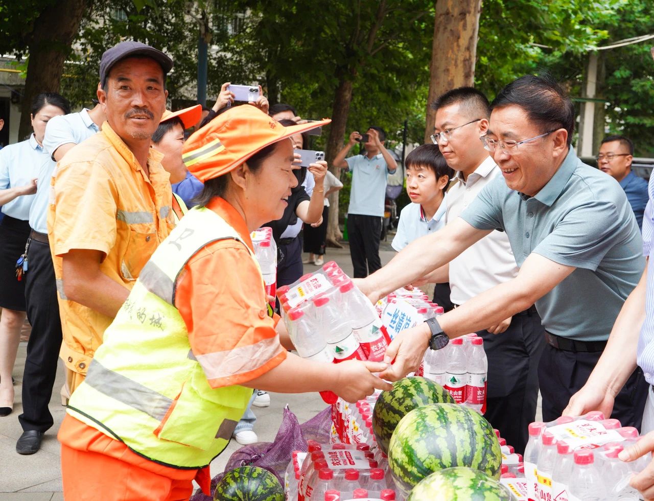 在当天同步启动的枣园街道唐都花园社区“清凉驿站”,社区主任、新时代文明实践站站长姚美珍说:“今天捐赠的这些爱心物资,是对户外一线工作者辛勤付出的认可和满意”。环卫工人王李霞表示:“我们一定会坚守岗位,用行动让这个城市更干净更美丽”。