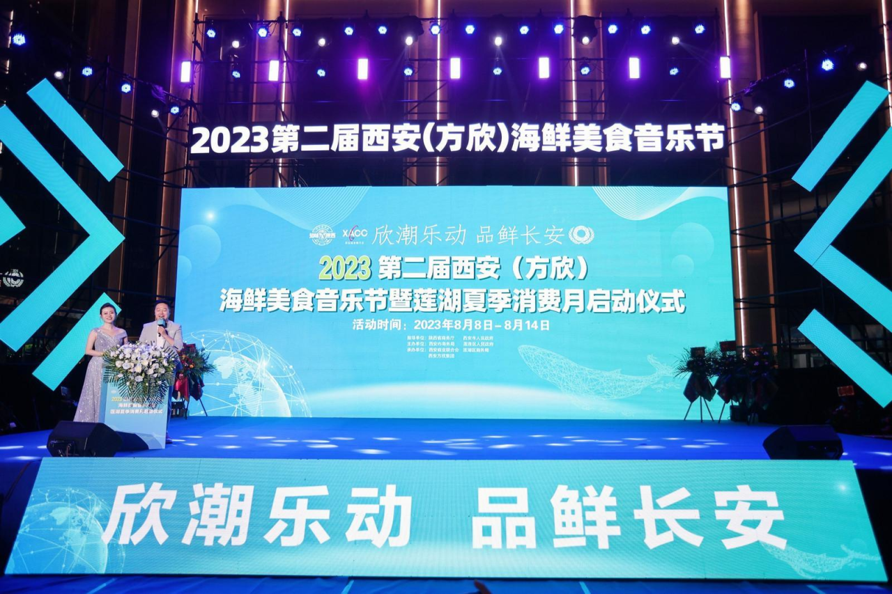 8月8日,由西安市商务局、莲湖区人民政府主办,西安商业联合会、西安方欣集团承办的2023“知味陕西”餐饮消费季西安(方欣)海鲜音乐节暨莲湖夏季消费月启动仪式在方欣海鲜市场南广场举行。本次活动是“中华美食荟知味陕西”系列活动之一,旨在打造独具特色和具有品牌效应的户外夜间经济新模式,助力商贸业、旅游业、餐饮业的快速复苏和城市经济的繁荣。
