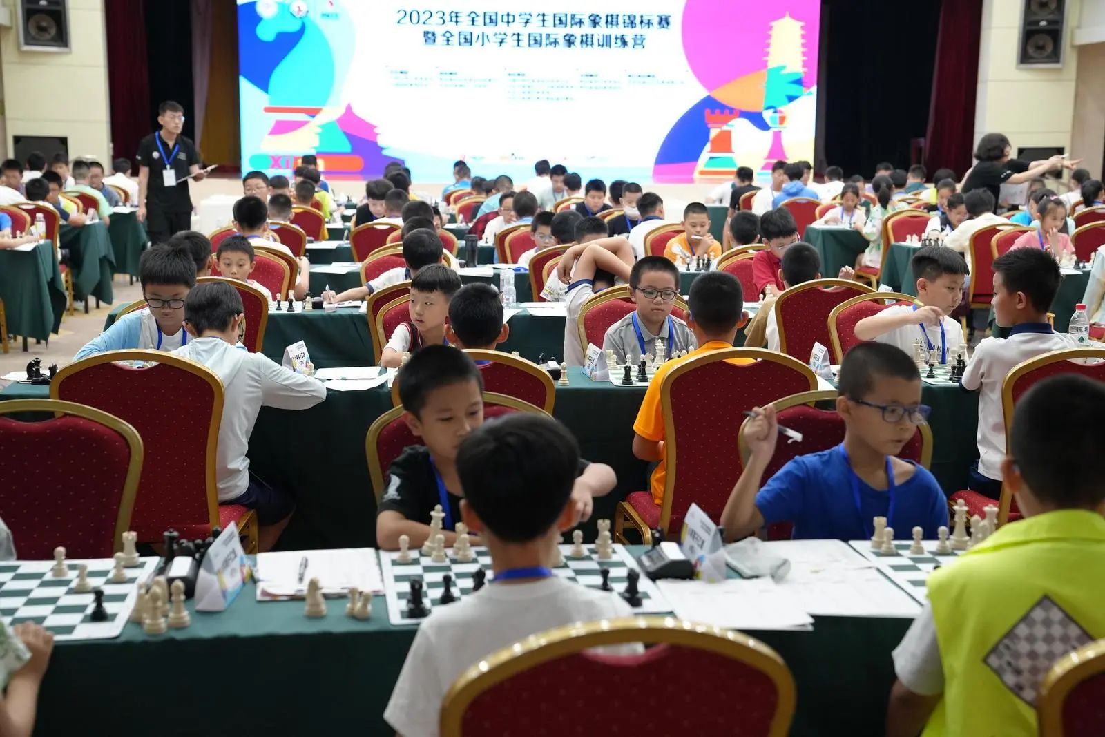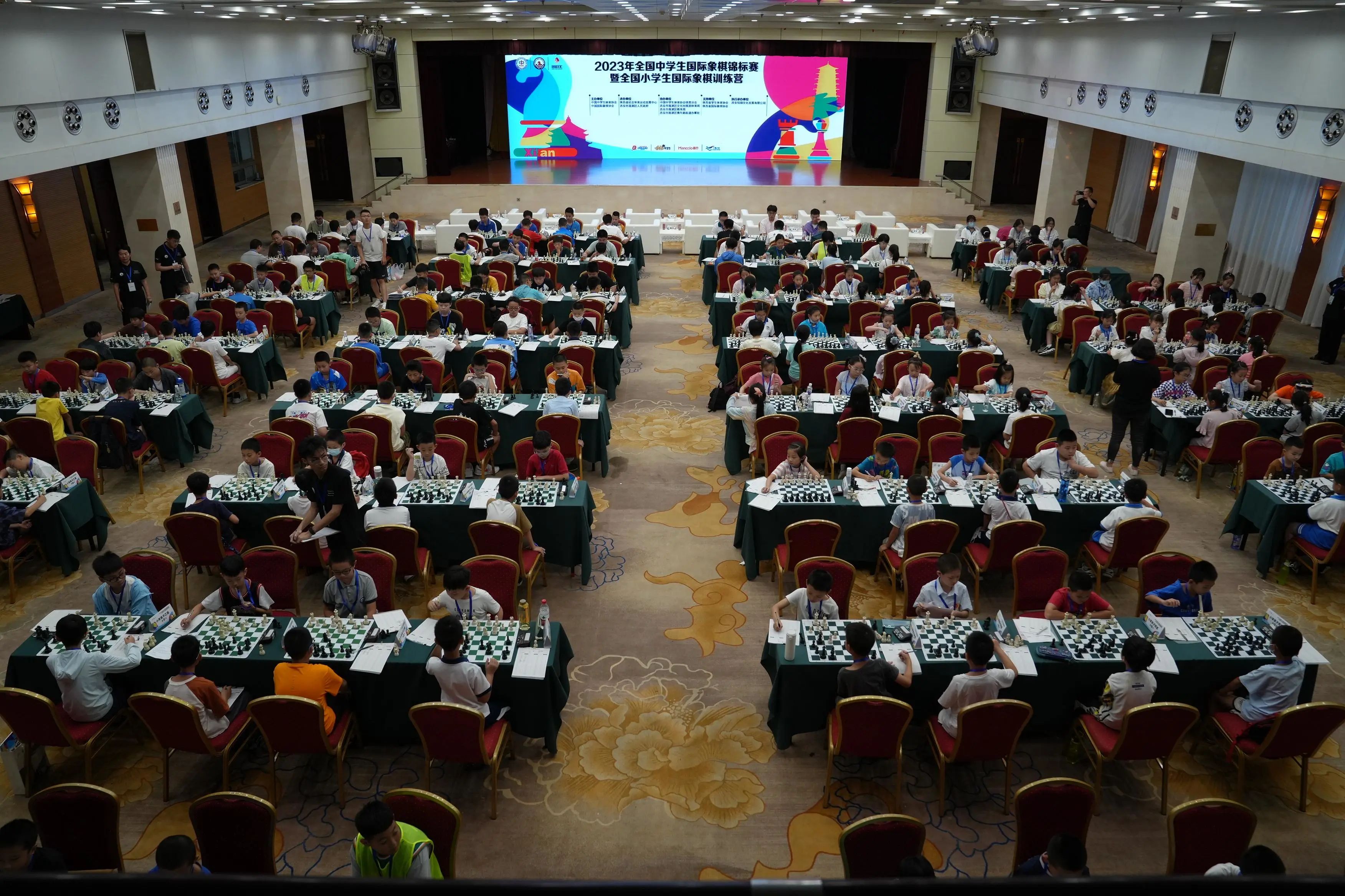 8月14日,为期5天的2023年全国中学生国际象棋锦标赛暨全国小学生国际象棋训练营在西安莲湖拉开帷幕,共有来自全国129所学校的230多名选手参加。