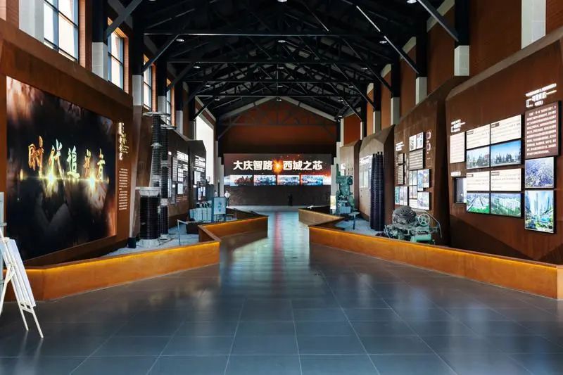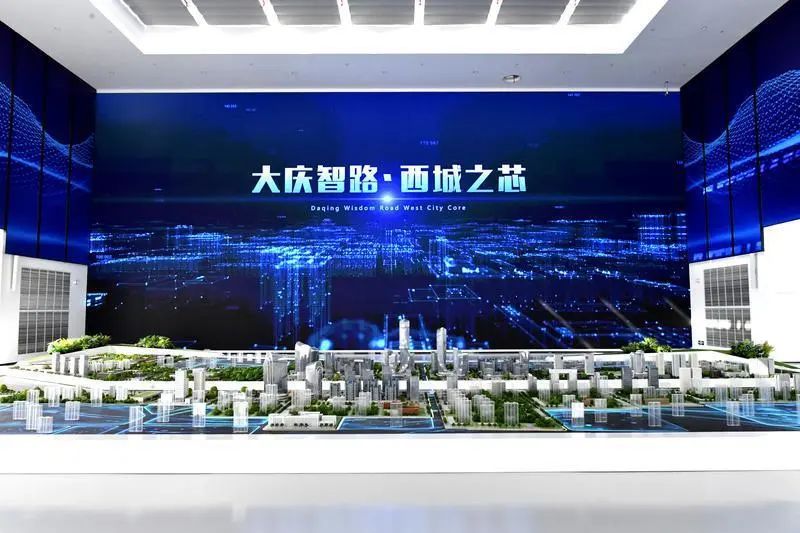 在产业园充满科技感的大庆智路规划馆内,巨大的沙盘灯光闪烁,一条电子屏幕铺成的“大庆智路”将沙盘一分为二。