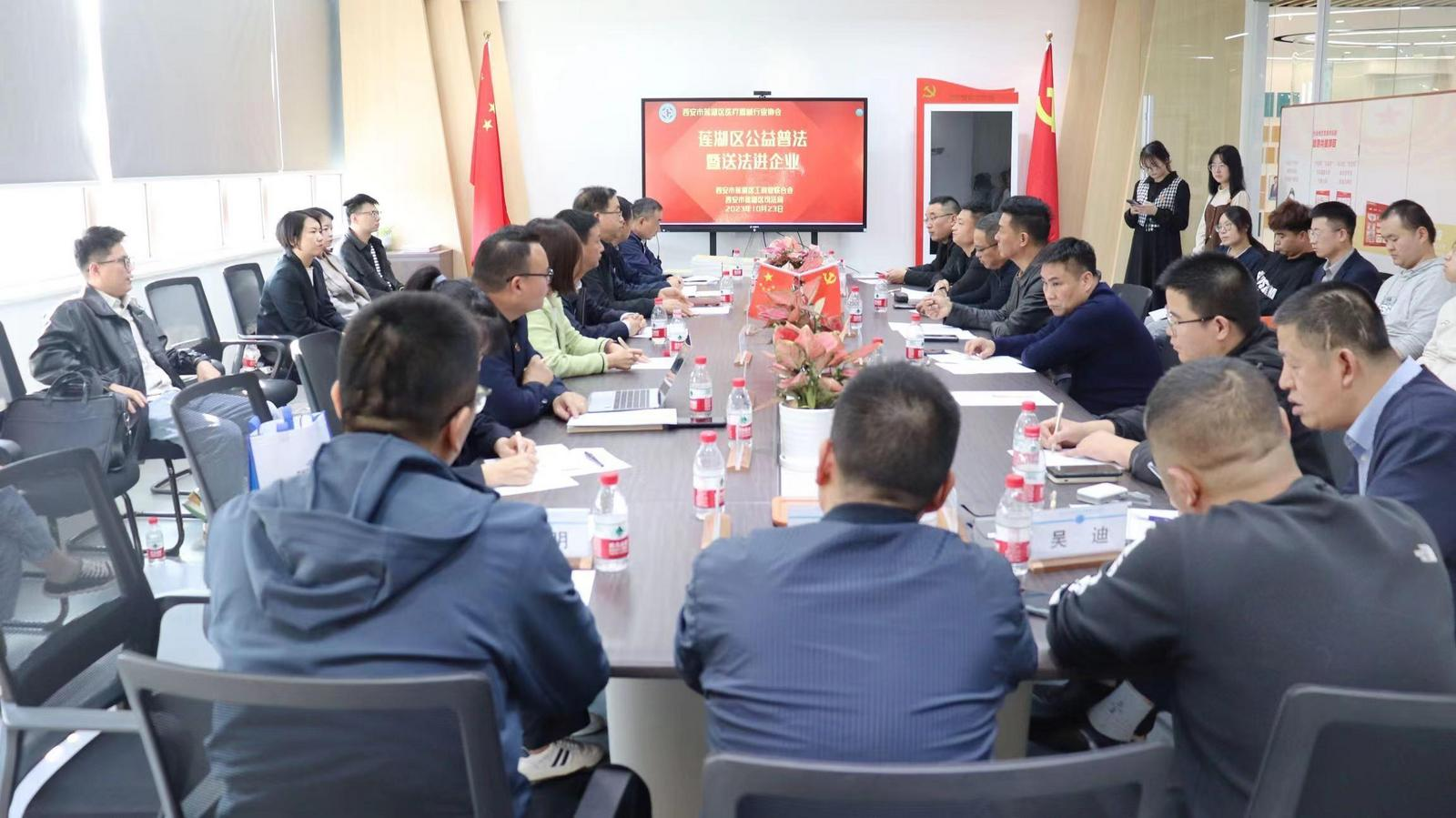 10月23日,莲湖区司法局联合区工商联开展“公益普法基层行”暨“送法进企业”活动,为“莲湖区医疗器械协会”20余家成员单位送政策、送信息、送服务,推动企业增强依法合规经营、防范风险意识。