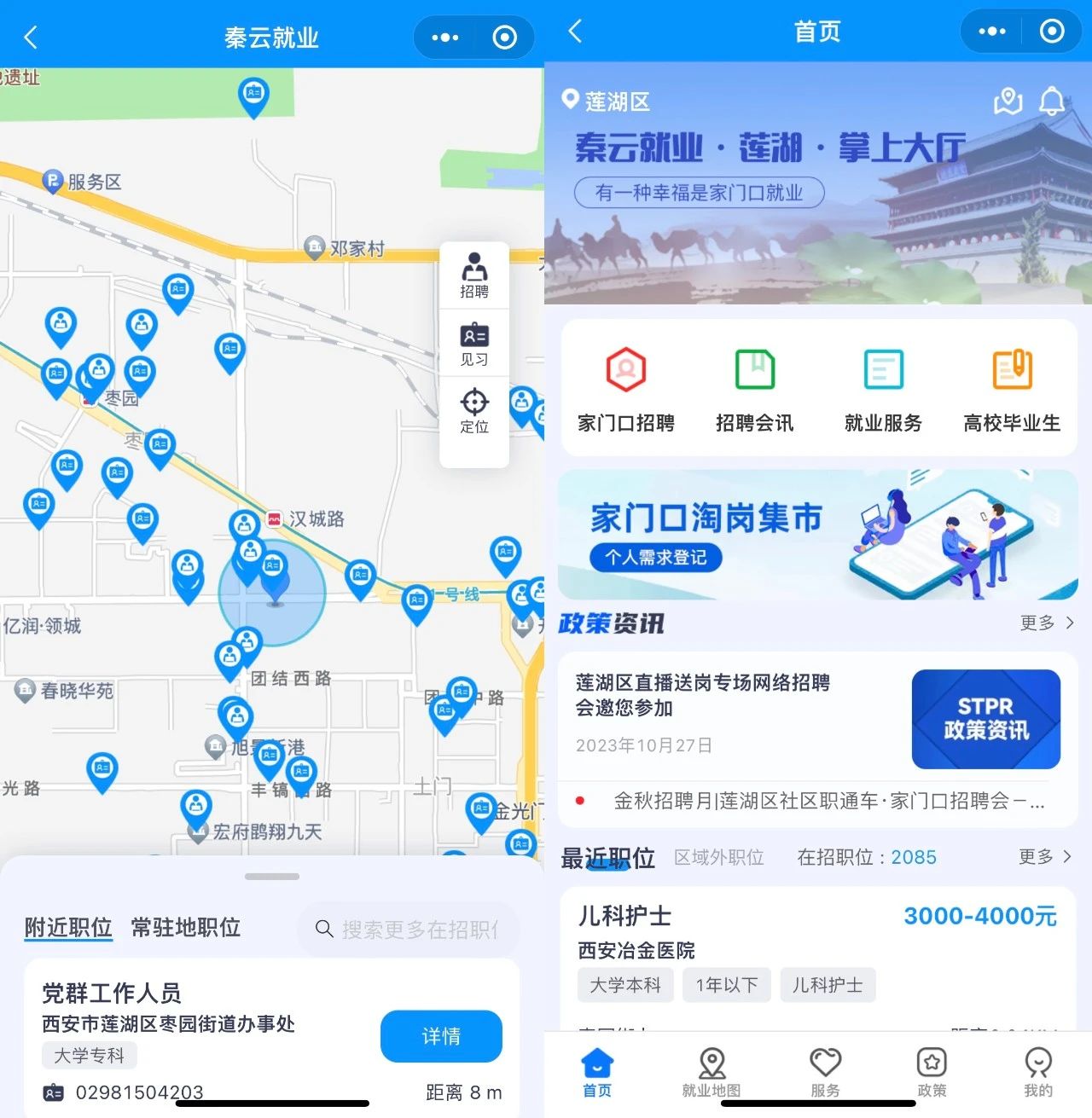 莲湖区依托全省“秦云就业”公共服务平台,建设“秦云就业莲湖掌上大厅”,收集归纳企业岗位信息,将“人找岗”和“岗找人”相结合,形成“家门口就业地图”,直观展示招聘企业分布,实现就业服务智能导航、精准定位、实时检索,为群众提供岗位查询、岗位推送、线上招聘等157项服务,方便群众随时随地获悉家门口就业信息。