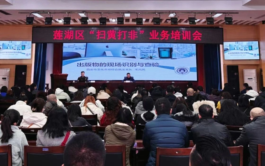 为充分发挥“扫黄打非”基层站点作用,进一步提升工作水平,切实筑牢安全屏障,11月14日,莲湖区举办“扫黄打非”业务专题培训,西安市文化市场综合执法支队莲湖大队,各街道、社区相关负责同志160余人参加。