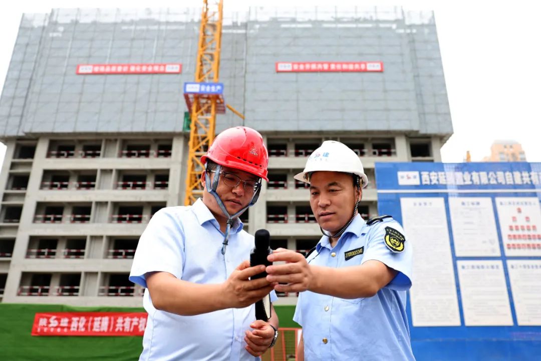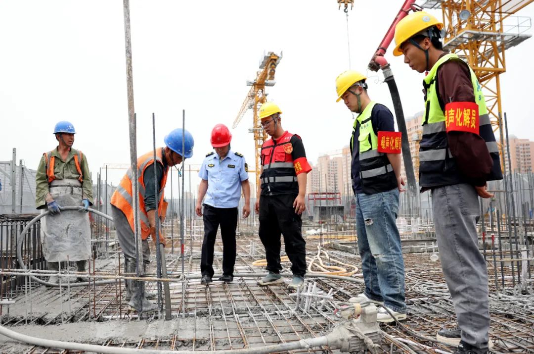 当天上午,生态环境莲湖分局负责人带队现场查看了工地上各项噪声防治措施。项目相关负责人介绍,工地上选用了静音发电机、低噪音振动棒等设备;采用HPC预制板、预制楼梯等新型工艺,减少现场切割、焊接等高噪声作业;采用施工机具隔音棚覆盖切割机、钢筋加工区;打桩、破碎、切割等工序也避免在夜间或居民休息时进行。此外,施工方聘用了10名由街道、社区、项目方、安置职工、周边群众组成的“噪声化解员”,确保施工过程中产生的噪声得到有效控制。