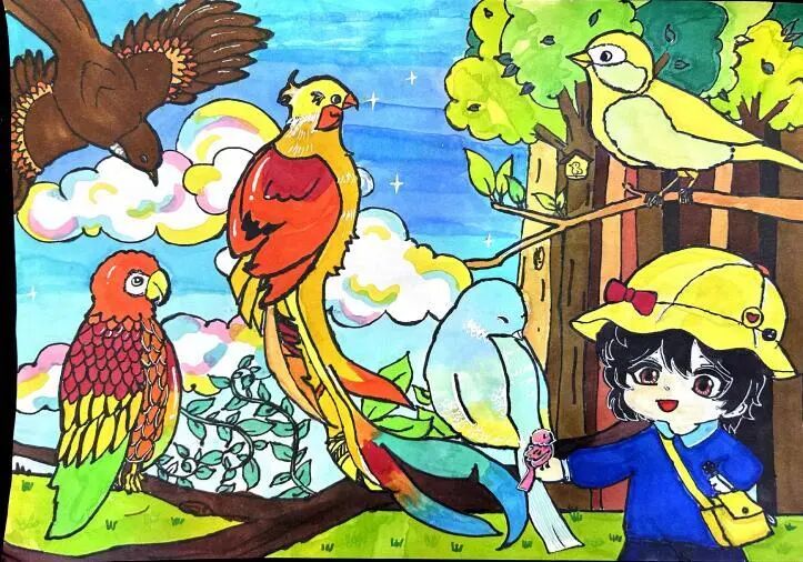 莲湖区机场小学低年级组建“小鸟侦探团”,学生利用课间、课后在校园花园、操场周边观察喜鹊、麻雀等常见鸟类,记录鸟类行为习性,在直观体验中培养自然观察能力;中年级开展“我给小鸟安个家”手工活动,学生精心制作鸟屋并悬挂于校园安全区域,定期添食观察,建立与鸟类的情感联结;高年级围绕“鸟类与生态”主题开展思维导图创作,以小组合作形式整合资料,剖析鸟类与生态系统的关系、面临的生存威胁及保护策略,将感性认知升华为理性思考。同时,各校积极推动跨学科融合,科学教师提供鸟类知识指导,美术教师辅导作品创作,劳动课搭建实践平台,实现“在做中学、在学中悟”的育人目标。
