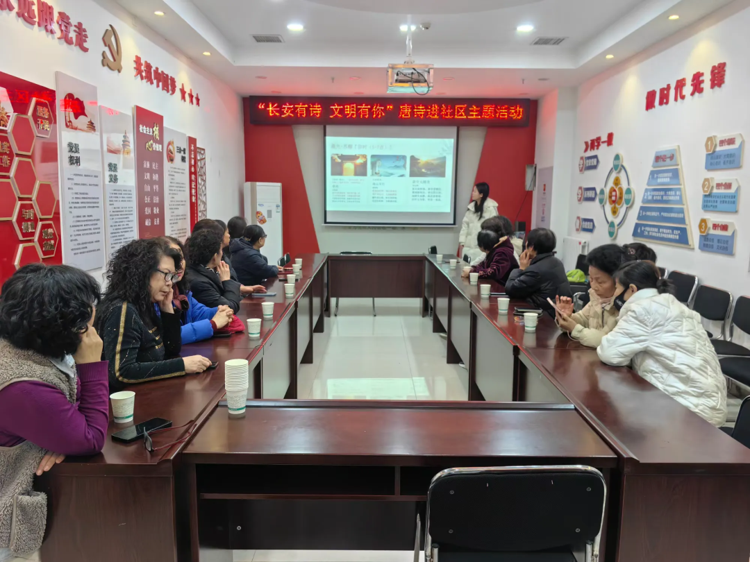“晨起动征铎,客行悲故乡”“夕阳无限好,只是近黄昏……”在学习巷社区、解家村新社区等活动现场,志愿者以“长安十二时辰”为时间线索,用一首首经典唐诗串联起古人的一天。从白居易笔下“晨光出照屋梁明”的卯时破晓,到李白诗中“银鞍照白马,飒沓如流星”的午间意气,再到李商隐慨叹“夕阳无限好”的黄昏暮色,让居民们在领略到唐诗的永恒魅力的同时沉浸式感受盛唐的市井繁华与人文风貌。