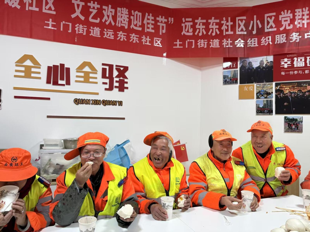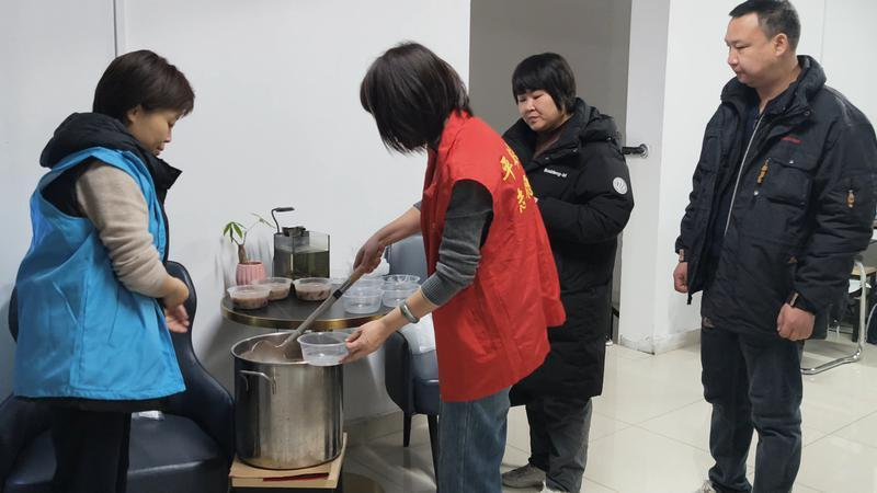 土门远东东社区依托小区党群服务站,搭建暖心餐桌,为环卫工人们准备了腊八粥、软糯馒头与鲜香拌菜,让大家围坐畅谈、共享节令早膳。一大早,社区工作人员和志愿者便开始忙碌,将红豆、糯米、红枣等食材熬制成浓香的腊八粥。9时许,第一锅热粥首先送到了辖区环卫工人手中,为他们驱走清晨的寒冷。随后,“送粥小分队”提着分装好的粥,送给辖区空巢、独居老人。当日下午,社区党群服务站前的广场变身欢乐海洋,居民自编自演的舞蹈、独唱等节目精彩上演,烘托出喜庆祥和的节日氛围。舞台旁,社区还设立了政策咨询台,工作人员现场为居民解答医保、养老、助餐等惠民政策,让居民感受到“家”的温暖。
